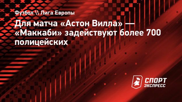 Более 700 полицейских будут задействованы для обеспечения безопасности на матче 4-го тура общего этапа Лиги Европы «Астон Вилла» — «Маккаби» (Тель-Авив), сообщает ESPN.