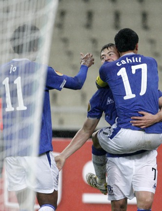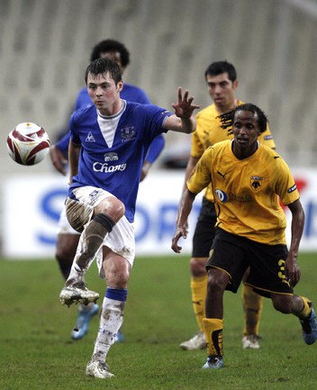 Лига Европы. Групповой турнир. Группа I. АЕК (Греция) - "Эвертон" (Англия) - 0:1 (0:1). Полузащитник сборной России Динияр Билялетдинов забил единственный мяч в боевом поединке против АЕКа в рамках 5-го тура Лиги Европы, обеспечив своей команде участие в плей-офф второго по престижности еврокубка. Фото - REUTERS