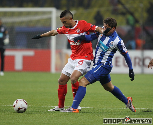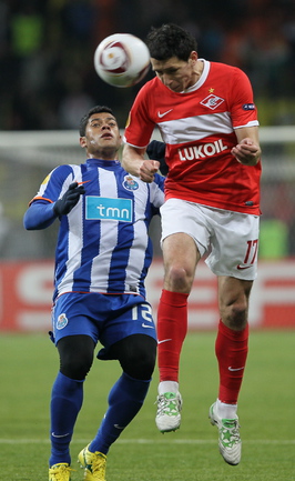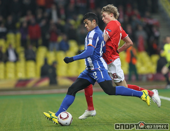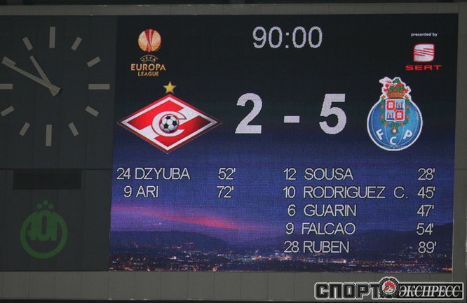 Лига Европы. 1/4 финала. Ответный матч. "Спартак" (Россия) – "Порту" (Португалия) – 2:5 (0:2). Голы: Халк, 28 (0:1). К. Родригес, 45 (0:2). Гуарин, 47 (0:3). Дзюба, 52 (1:3). Фалькао, 54 (1:4). Ари, 72 (2:4). Рубен Микаэл, 90 (2:5). Первый матч - 1:5. Фото - Александр ФЕДОРОВ, "СЭ"