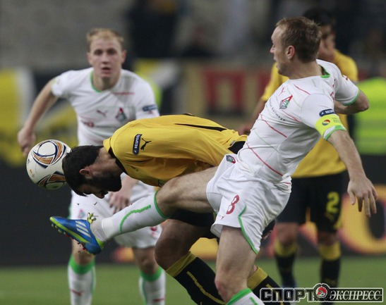Футбол. Лига Европы. Групповой турнир. 4-й тур. Группа L. АЕК (Греция) - "Локомотив" (Россия) - 1:3 (0:0). Голы: Глушаков, 50 (0:1). Леонарду, 60 - с пенальти (1:1). Майкон, 72 (1:2). Игнатьев, 80 (1:3). Группа A. "Рубин" (Россия) - "Тоттенхэм" (Англия) - 1:0 (1:0). Гол: Натхо, 56. "Андерлехт" (Бельгия) - "Штурм" (Австрия) - 3:0 (1:0). Голы: Жилле, 23 (1:0). Суарес, 74 (2:0). Де Суттер, 81 (3:0). Фото REUTERS
