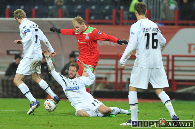 Москва. Черкизово. Лига Европы. Групповой турнир. 5-й тур. Группа L. "Локомотив" - "Штурм" - 3:1. Голы: Майкон, 62 (1:0). Кайнц, 63 (1:1). Сычев, 72 – с пенальти (2:1). Глушаков, 89 (3:1).Фото Антона СЕРГИЕНКО "СЭ Интернет"