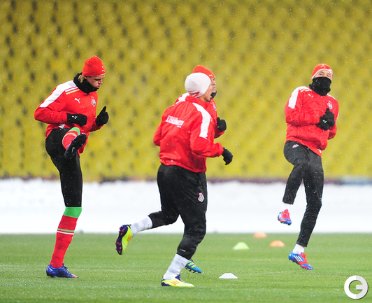 15.02.2012. Москва. БСА "Лужники". "Локомотив" провел тренировку перед матчем с "Атлетиком Бильбао". Фото Антона СЕРГИЕНКО, "СЭ ИНТЕРНЕТ"