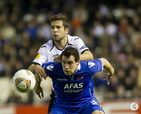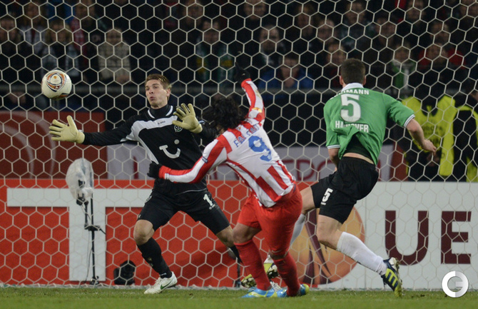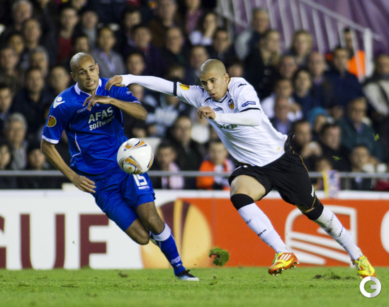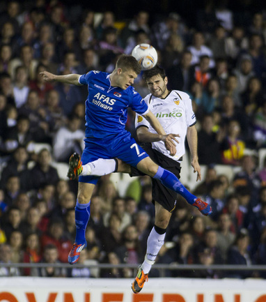 Футбол. Лига Европы. Плей-офф. 1/4 финала. "Валенсия" (Испания) - АЗ (Голландия) - 4:0 (2:0). Голы: Рами, 15 (1:0). Рами, 17 (2:0). Хорди Альба, 56 (3:0). Пабло Эрнандес, 80 (4:0). Первый матч - 1:2. "Атлетик" (Испания) - "Шальке"(Гремания) - 2:2 (1:1). Голы: Хюнтелар, 28 (0:1). Ибаи Гомес, 41 (1:1). Рауль, 52 (1:2). Сусаэта, 55 (2:2). Первый матч - 4:2. "Ганновер"(Германия) - "Атлетико" (Испания) - 1:2 (0:0). Голы: Адриан, 63 (0:1). Диуф, 81 (1:1). Фалькао, 87 (1:2). Первый матч - 1:2. "Металлист" (Харьков) - "Спортинг" (Португалия) - 1:1 (0:1). Голы: Ван Волфсвинкел, 45 (0:1). Кристальдо, 58 (1:1). Нереализованный пенальти: Клейтон Шавьер("Металлист"), 64 (вратарь). Первый матч: 1-2. Фото AFP