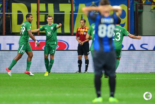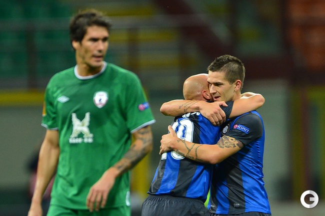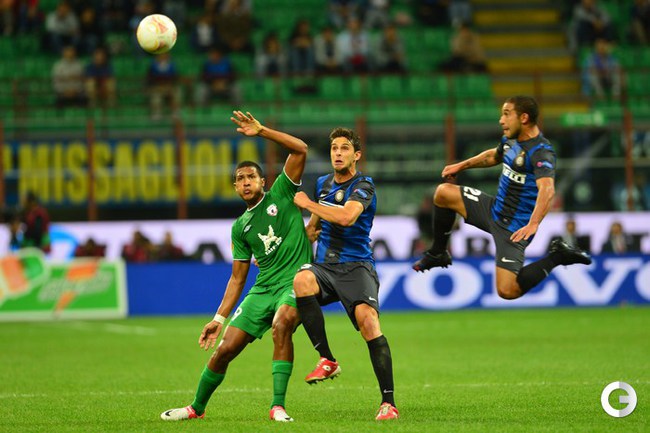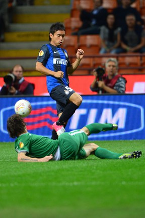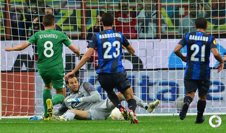 Футбол. Лига Европы. Групповой турнир. 1-й тур. Группа A. "Удинезе" (Италия) - "Анжи" (Россия) - 1:1 (0:1). Голы: Паделли, 45 - в свои ворота (0:1). Ди Натале, 90+1 (1:1). Милан (Италия). Групповой турнир. 1-й тур Группа H. "Интер" (Италия) - "РУБИН" (Россия) - 2:2 (1:1). Голы: Рязанцев, 18 (0:1). Ливая, 39 (1:1). Рондон, 84 (2:2). Нагатомо, 90+2. (2:2). Фото AFP