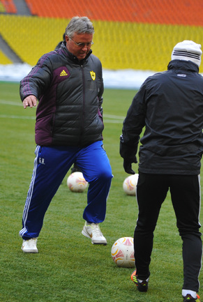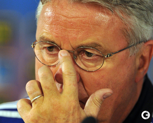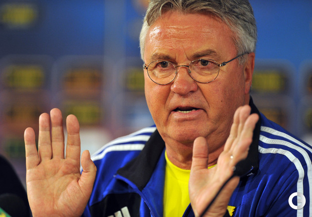 Футбол. Главный тренер "Анжи" Гус Хиддинк на пресс-конференции накануне домашнего первого матча 1/16 финала Лиги Европы с "Ганновером" выразил мнение, что капитан махачкалинцев Самюэль Это'О сможет принять участие в завтрашней игре. Фото - Александр Федоров, "СЭ"