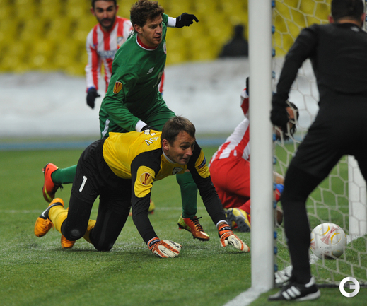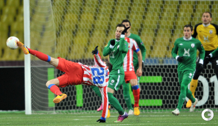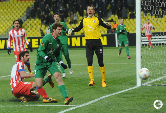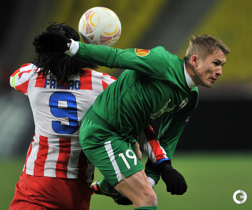Футбол. Лига Европы. 1/16 финала. Ответный матч. "Рубин" (Россия) - "Атлетико" (Испания) - 0:1 (0:0). Гол: Фалькао, 84. "Рубин" вышел в 1/8 финала Лиги Европы, несмотря на поражение в московском матче с "Атлетико" - 0:1. Неделю назад в Мадриде казанцы выиграли с более крупным счетом - 2:0. Фото Татьяны Дорогутиной, "СЭ", Алексея Иванова, "СЭ" и Александра Федорова, "СЭ"