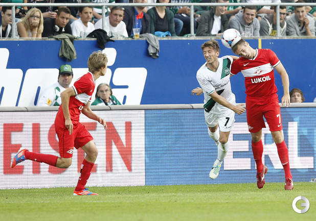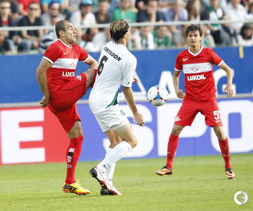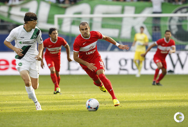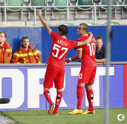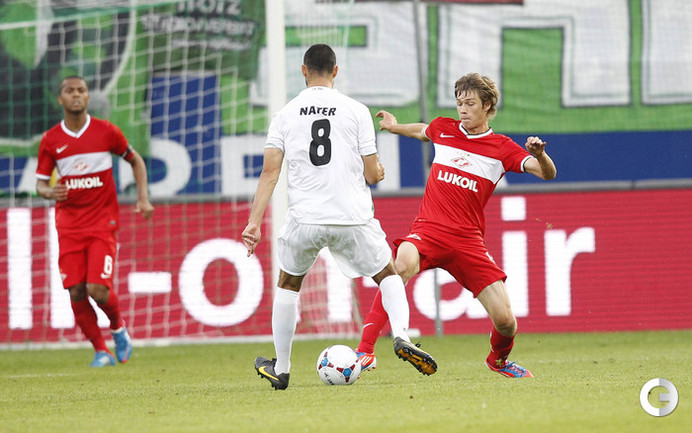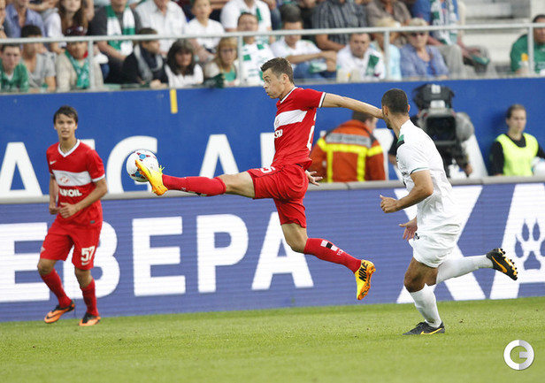 Футбол. Лига Европы. 4-й отборочный раунд. Первый матч. "Санкт-Галлен" (Швейцария) – "СПАРТАК" (Россия) – 1:1 (0:1). Голы: Мовсисян, 37 (0:1). Матис, 47 (1:1). В первом матче 4-го отборочного раунда Лиги Европы "Спартак" в гостях не удержал победы над "Санкт-Галленом" – 1:1. Счет на 37-й минуте открыл нападающий красно-белых Юра Мовсисян, однако швейцарцы стараниями Марко Матиса на 47-й его сравняли. Фото Александра СТУПНИКОВА, ФК "Спартак"