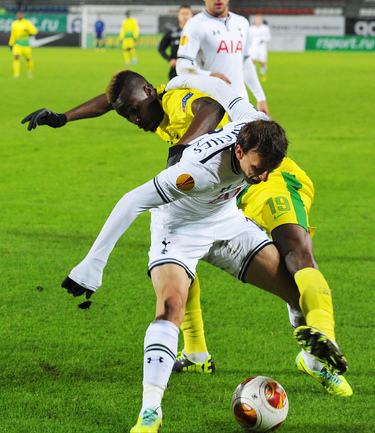 Футбол. Лига Европы. Групповой турнир. 2-й тур. Группа К. "АНЖИ" (Россия) – "Тоттенхэм" (Англия) – 0:2 (0:2). "Анжи": Помазан, Аделейе, Эвертон, Тагирбеков, Ангбва (Гаджибеков, 78), Ахмедов, Жусилей, Разак, Сердеров (Ещенко, 56), Соломатин, Абдулавов (Траоре, 46). "Тоттенхэм": Ллорис, Кабуль (Доусон, 71), Кирикеш, Фрайерс, Уокер, Сандру, Дембеле, Холтби (Эриксен, 78), Ламела (Сигурдссон, 70), Шадли, Дефо. Фото - Александр ФЕДОРОВ, "СЭ"