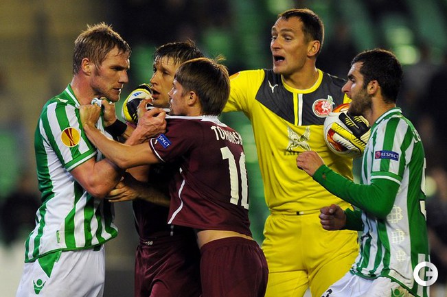 "Рубин" на чужом поле в первом матче 1/16 финала Лиги Европы сыграл вничью с "Бетисом" со счетом 1:1. Фото AFP