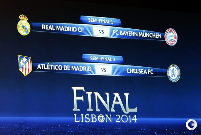 В Лиге чемпионов в 1/2 финала пары составили: "Реал" – "Бавария", "Атлетико" – "Челси". В Лиге Европы "Севилья" – "Валенсия", "Бенфика" – "Ювентус". Фото AFP