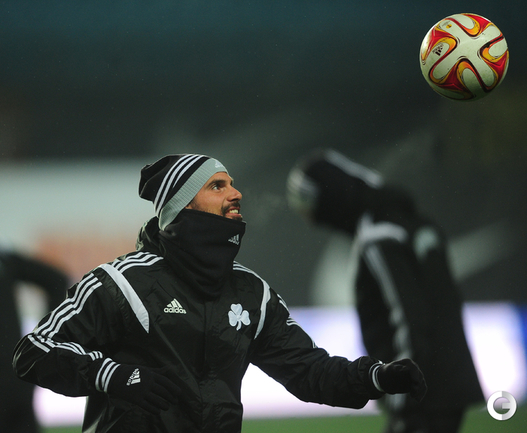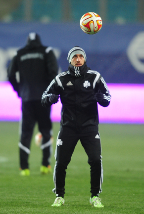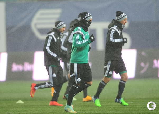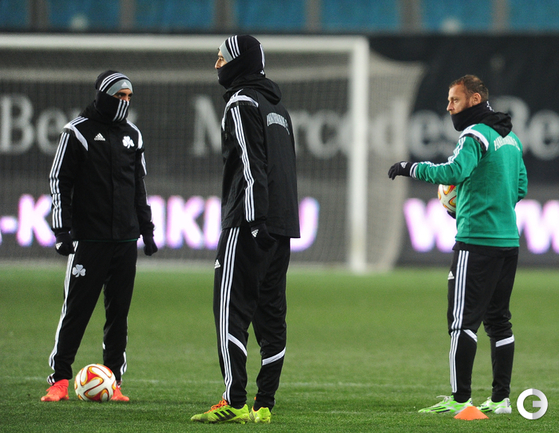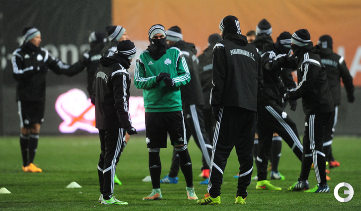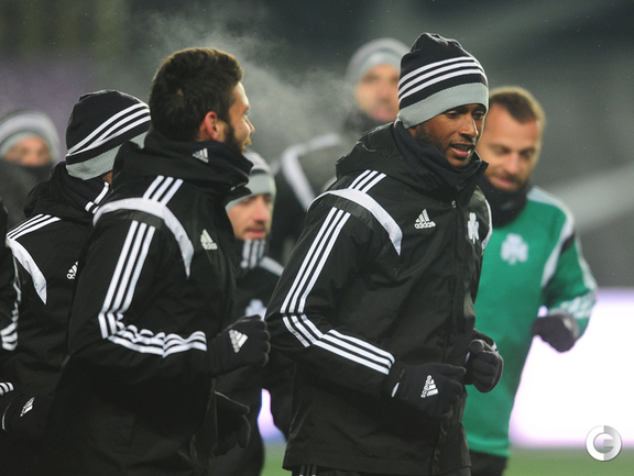 Накануне матча 5-го тура группового этапа Лиги Европы против "Динамо", игроки "Панатинаикоса" провели тренировку на морозном воздухе подмосковный Химок. Фото - Антон Сергиенко, "СЭ"
