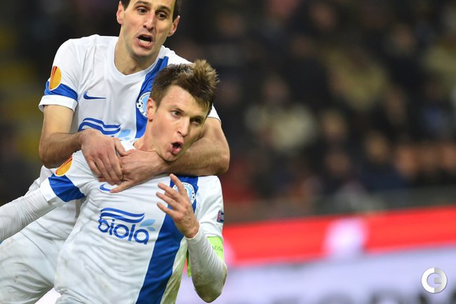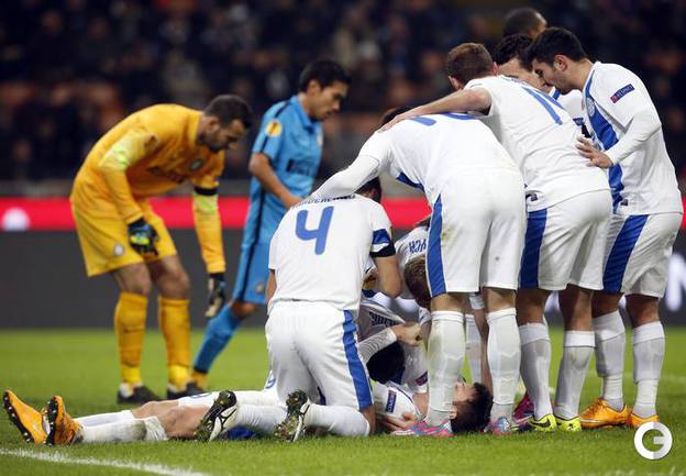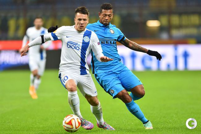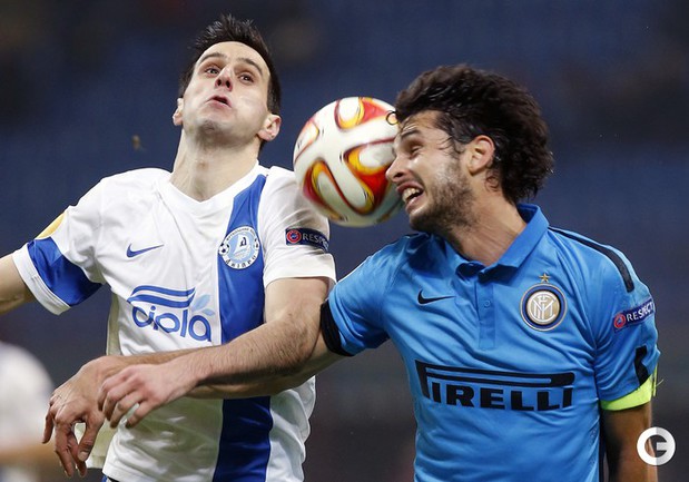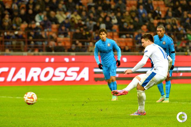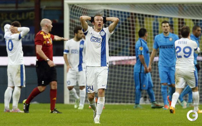 Лига Европы. Групповой турнир. Группа F. 5-й тур. "Интер" – "Днепр" – 2:1. Голы: Ротань, 16 (0:1). Кузманович, 30 (1:1). Освальдо, 50 (2:1). Нереализованный пенальти: Коноплянка, 28 (вратарь). Удаление: Раноккиа, 46. Фото AFP, REUTERS