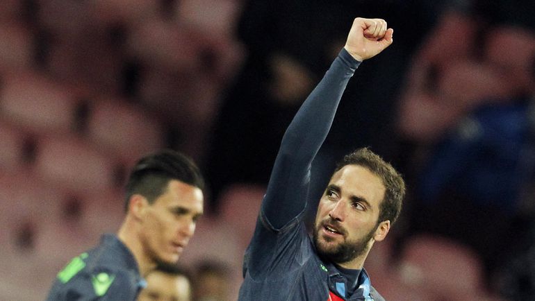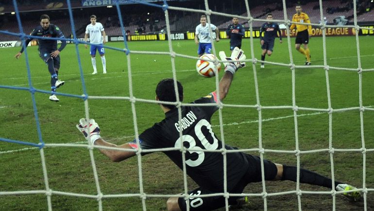 Лига Европы. 1/8 финала. Первый матч. "Наполи" (Италия) – "ДИНАМО" (Россия) – 3:1 (2:1). Голы: Кураньи, 2 (0:1). Игуаин, 25 (1:1). Игуаин, 31 – с пенальти (2:1). Игуаин, 55 (3:1). Фото AFP, REUTERS