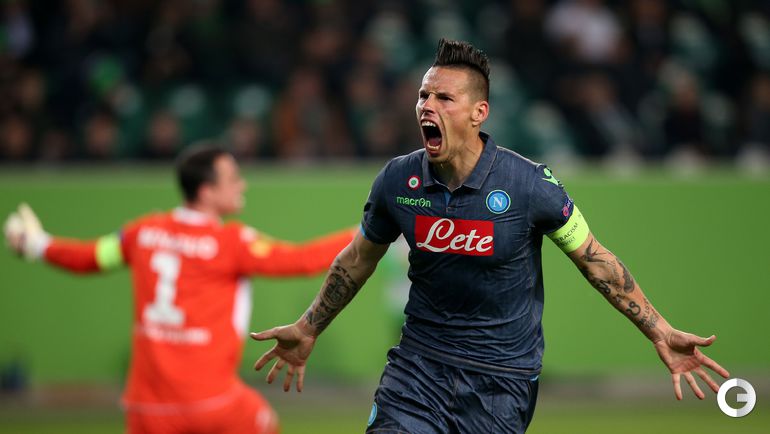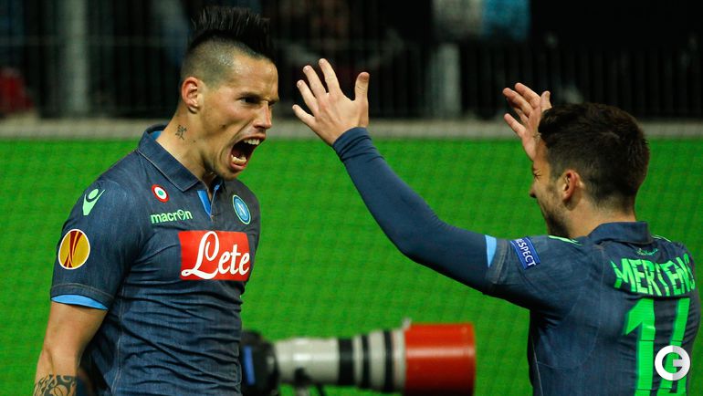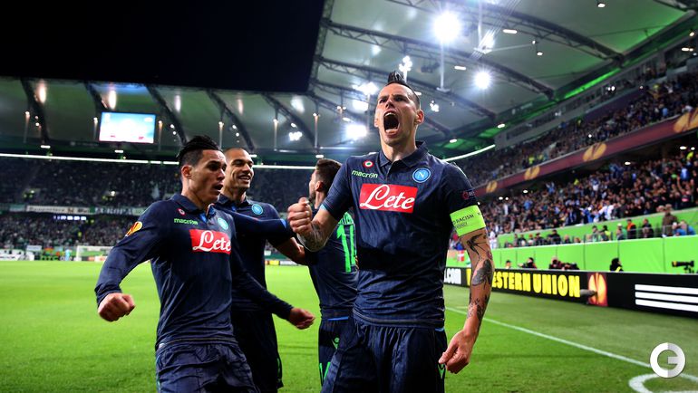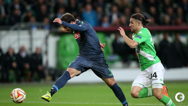 Лига Европы. 1/4 финала. Первый матч. "Вольфсбург" – "Наполи" – 1:4 (0:2). Голы: Игуаин, 15 (0:1). Хамшик, 23 (0:2). Хамшик, 64 (0:3). Габбьядини, 77 (0:4). Бендтнер, 80 (1:4). Фото AFP, REUTERS