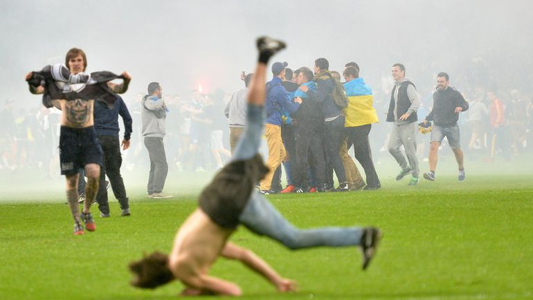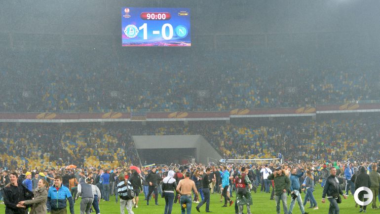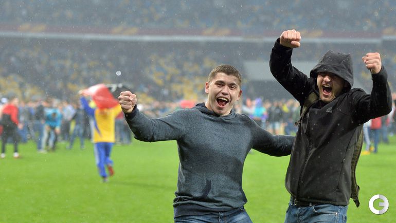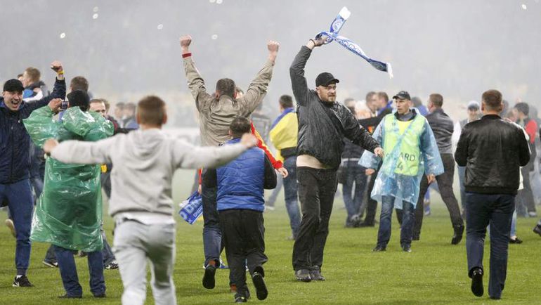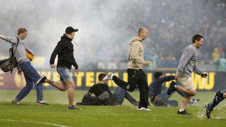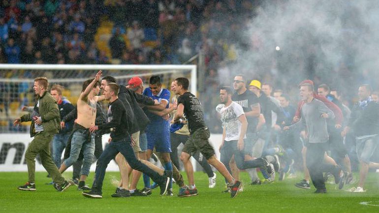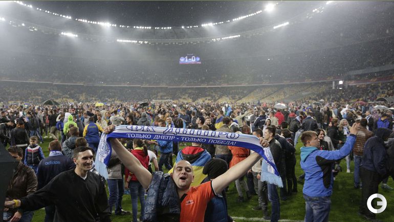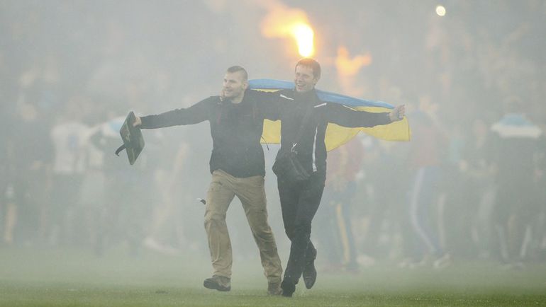 Болельщики "Днепра" отпраздновали выход команды в финал Лиги Европы беспорядками на стадионе. Украинский клуб дошел до финала еврокубкового турнира впервые в своей истории. В решающем матче подопечные Мирона Маркевича встретятся с "Севильей". Фото AFP, REUTERS