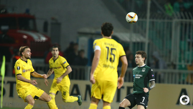 В домашнем матче 5-го тура группового раунда Лиги Европы "Краснодар" победил дортмундскую "Боруссию" – 1:0. Единственный мяч на 2-й минуте с пенальти провел Павел Мамаев. 11-метровый был назначен за фол Матса Хуммельса на Маурисио Перейре. Вместе с тем "Краснодар" вышел в плей-офф и занимает первое место группы – имея с дортмундцами по 10 очков в активе, "быки" опережают их по личным встречам (1:2 в Германии). В заключительном туре группового раунда 10 декабря краснодарцы сыграют в гостях с "Габалой", а "Боруссия" примет ПАОК.