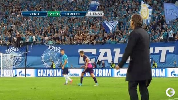 "Зенит" обыграл "Утрехт" со счетом 2:0 в ответном матче 4-го отборочного раунда Лиги Европы. На 9-й и 105-й минутах победный дубль оформил Александр Кокорин. Лучший бомбардир петербургского клуба в этом сезоне провел 9 голов - до 35 мячей на пару с Артемом Дзюбой, обозначенных в качестве цели главным тренером невского клуба Роберто Манчини, нападающему осталось забить 26 раз (его напарник пока в сезоне не отличался). Сам Манчини получил травму по ходу первого тайма (очевидно, потянул икроножную мышцу после рывка к мячу), после чего руководил командой в порванных брюках.