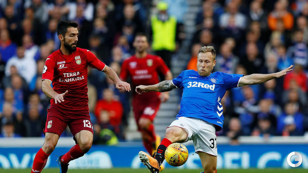 "Уфа" в первом матче 4-го отборочного раунда, имея несколько голевых моментов у ворот хозяев, уступила "Рейнджерс" (0:1). Единственный гол на 41-й минуте забил Коннор Голдсон. Ответная игра пройдет в России в четверг, 30 августа.