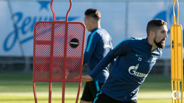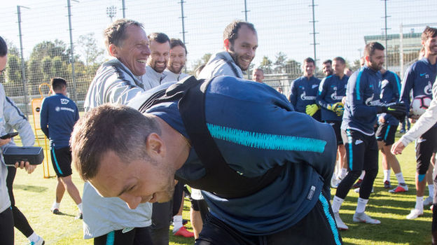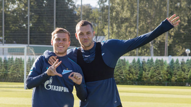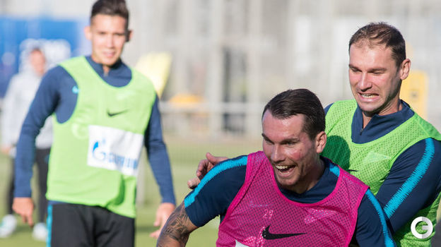 Накануне матча против "Мольде" в Лиге Европы "Зенит" провел тренировку на своей базе. Перед ее началом игроки поздравили Артема Дзюбу с 30-летием.