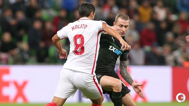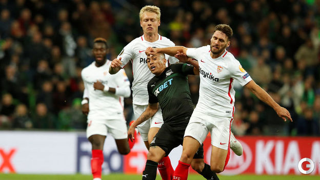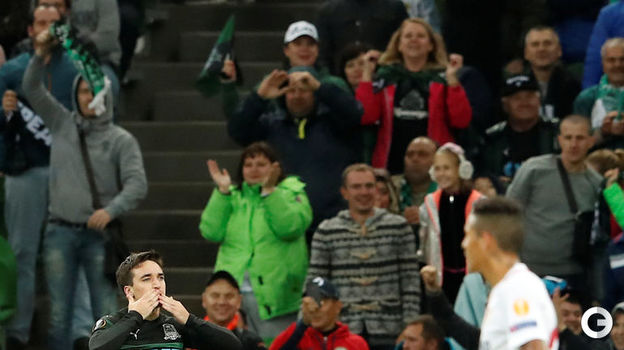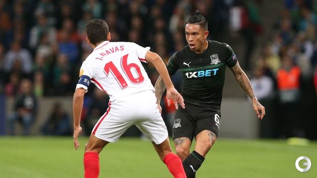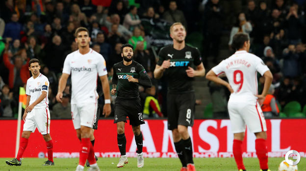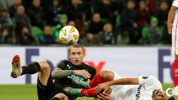 "Краснодар" дома одержал волевую победу над "Севильей" со счетом 2:1 в домашнем матче второго тура группового турнира Лиги Европы. Победу российскому клубу на 88-й минуте принес гол через себя Торнике Окриашвили.