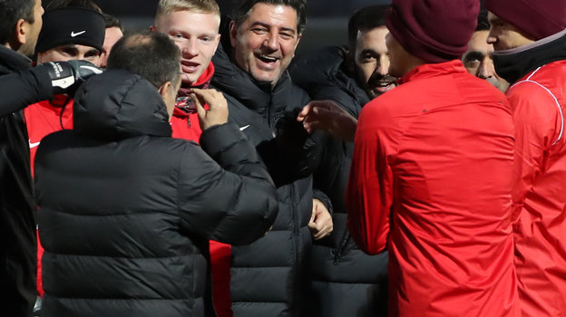 Футболисты поздравили тренеров Арналду Тейшейру и Владимира Чепзановича с днями рождения и устроили им символический коридор.