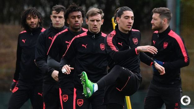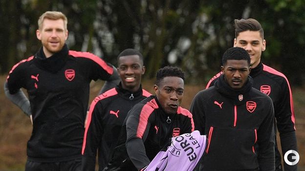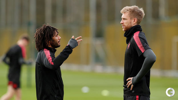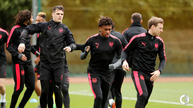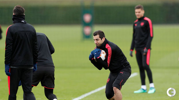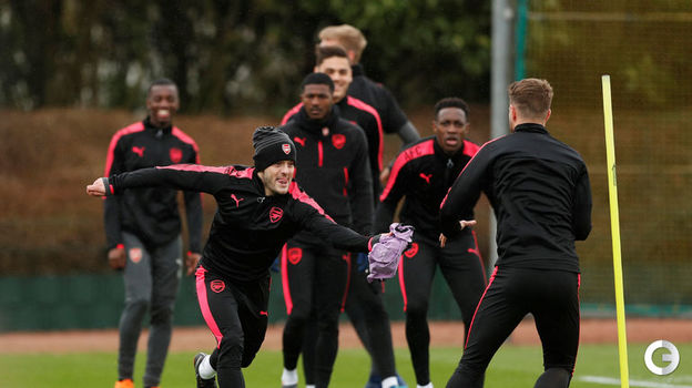 Лондонский "Арсенал" провел тренировку перед первым матчем 1/4 финала Лиги Европы против ЦСКА.