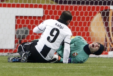 Вторую половину ПАОК начал с очередной угрозы. Лину прострелил слева, а Муслимович отвалился от Игнашевича, но с близкого расстояния переправил мимо стойки с внешней стороны. А дальше случилось крайне неприятное. Салпигидис опасно пошел в подкат за катившимся к Акинфееву мячом из-за спины Щенникова и врезался в ноги вратарю. Лицо голкипера исказила гримаса боли, он схватился за многострадальное левое колено. После оказания помощи капитан ЦСКА решил продолжить игру, но тут же был вынужден изменить решение (будем верить, что все ограничилось ушибом). Долгая замена могла заморозить кого угодно. Когда же неразогревшийся Чепчугов появился на газоне, он должен был разыграть мяч от своих ворот. Пас ближнему Березуцкий вернул назад, вот только "подставил" дублера Акинфеева. При попытке выноса - а другого не оставалось - последовал рикошет от налетевшего Муслимовича и срезка в ворота.