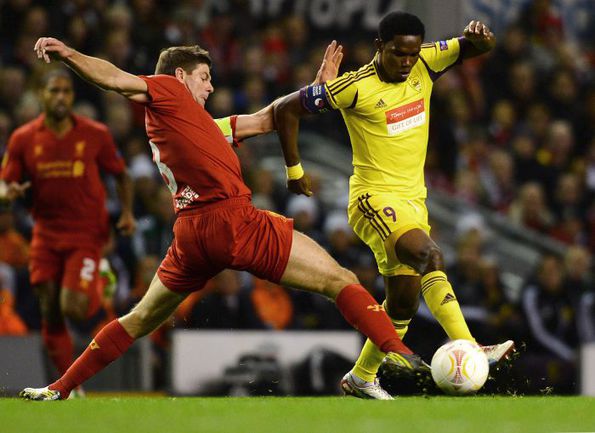 В перерыве главный тренер "Ливерпуля" Брендан Роджерс решил, что надо добавить активности и на правом фланге атаки, а потому бросил в бой Стерлинга. Тот на 50-й минуте выиграл борьбу в воздухе, сбросил мяч Суаресу, уругваец переадресовал его Джеррарду, но капитан красных не попал в створ с линии вратарской. А еще через три минуты "Ливерпуль" забил: критикуемый главным тренером Даунинг, который после выхода Стерлинга ушел на левый фланг обороны, получил мяч, сместился в центр и метров с 23 мощно пробил в дальний верхний угол. И вновь не успел Агаларов, которого вскоре заменил Логашов.