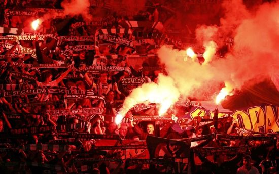 Болельщики "Санкт-Галлена" приветствуют команду.