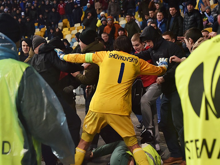 Теперь встает вопрос о наказании. Вице-президент Семененко признался, что тревожился перед послематчевым совещанием, но, "к счастью, все оказалось не так страшно". "Директор матча (видимо, делегат УЕФА. – Прим. А.П.) сказал, что в Европе прекрасно понимают, насколько напряженная и наэлектризованная сейчас ситуация в Украине".
