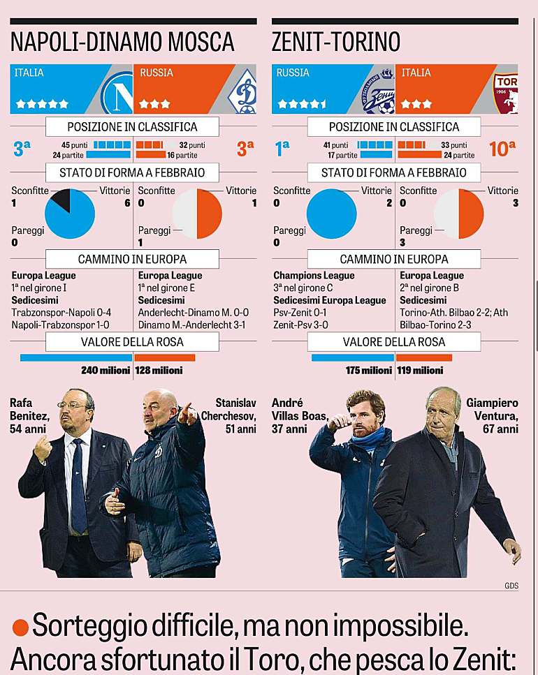 "СЭ" изучил реакцию итальянской прессы на итоги жеребьевки 1/8 финала Лиги Европы, которая свела "Наполи" с "Динамо", а "Торино" с "Зенитом".