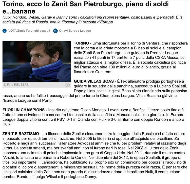 Tuttosport озаглавил свою заметку: "Зенит" из Санкт-Петербурга, полно денег... и бананов"