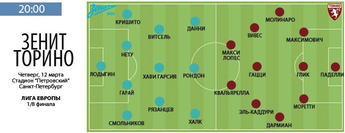 В первой серии российско-итальянского противостояния "Зенит" примет "Торино", а "Динамо" сыграет в гостях с "Наполи"