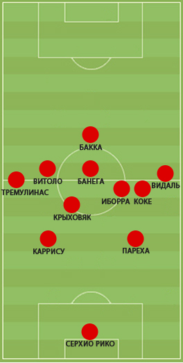 РАСПОЛОЖЕНИЕ ИГРОКОВ "СЕВИЛЬИ" В МАТЧЕ С "БАРСЕЛОНОЙ"
