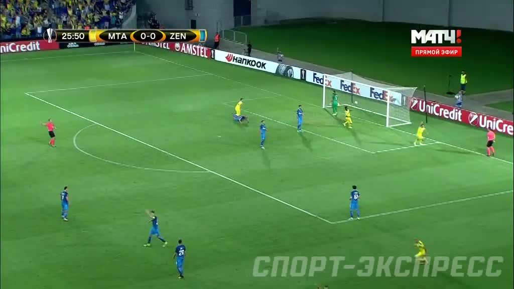 Затем арбитр назначил свободный на лини вратарской "Маккаби". Очевидно, за игру рукой вратаря после передачи назад от своего. После долгих препирательств судья все же продрался сквозь желтую стену игроков "Маккаби" и поставил мяч на нужную точку. А Маурисиу после откидки Мака вернул "Зениту" надежду.