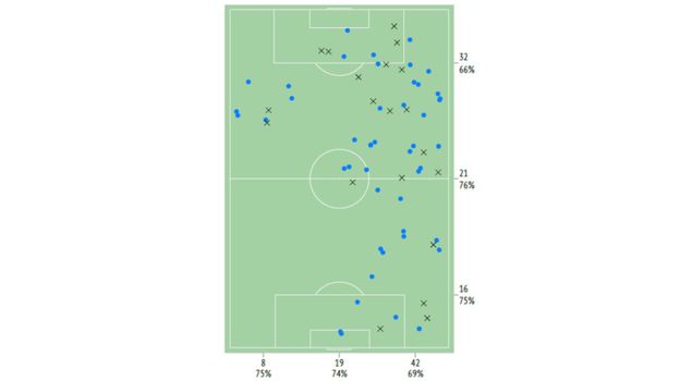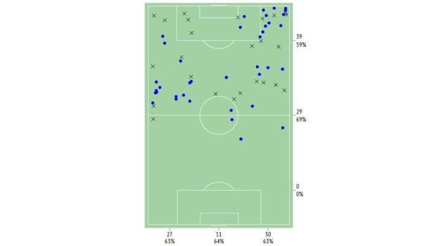 Чтобы не быть голословным насчет новой игровой роли Александра, вот несколько схем от InStat – из прошлого и нынешнего сезонов. На них отчетливо видно, как изменился ареал его жизнедеятельности на поле и насколько разнообразнее его использует Манчини.