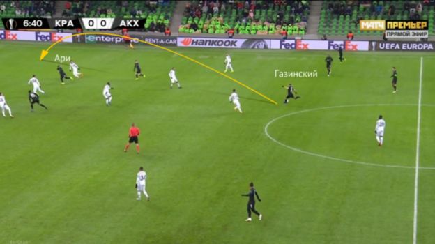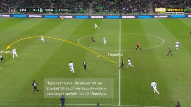 В такой ситуации главное оружие – это выход на пространство через забросы за спину защитникам. Та медлительный и теряет позицию, Бендер тоже не обладает высокой скоростью, а крайние защитники могут высоко выходить в прессинг. К сожалению для "Краснодара" не будет Газинского, который круто играет за спину в этом сезоне, но эти функции могут взять себя и Перейра вместе с Олссоном. И тут швед как никогда кстати.