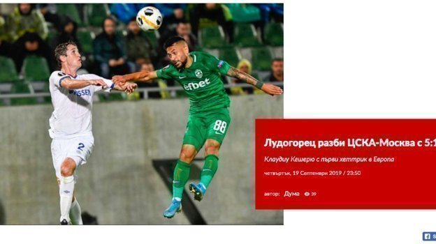 «Лудогорец» добился исторической победы над московским ЦСКА. Болгарский чемпион совершил впечатляющий камбэк, забив пять мячей всего за 25 минут второго тайма. Героем матча стал Клаудио Кешеру, сделавший хет-трик. Этот успех также является одним из самых убедительных для «Лудогорца» на евро-турнирах.