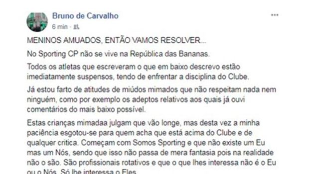 Бруну де Карвалью отреагировал на претензии моментально. И…опять в Фейсбуке. Похоже, в "Спортинге" не существует другого способа коммуникации.