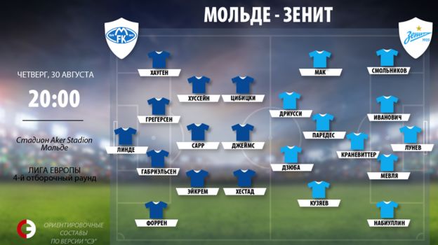 ЛИГА ЕВРОПЫ. 4-й отборочный раунд. 30 августа. "МОЛЬДЕ" - "ЗЕНИТ". 20.00 (мск)