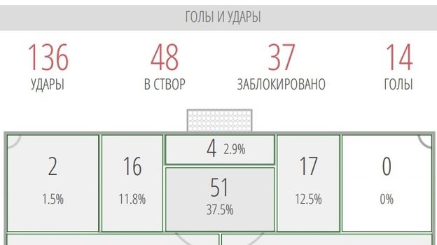 В бундеслиге больше "Лейпцига" (335 ударов) бьет только "Бавария" (421). Предпоследнее место с конца по ударам головой (33) и второе (160) по ударам из-за штрафной дадут вам намек – футболисты "Лейпцига" предпочитают играть низом и бьют с разных позиций. 9 мячей из 37 забиты выстрелами издалека, больше только у "Хоффенхайма" (10 голов).