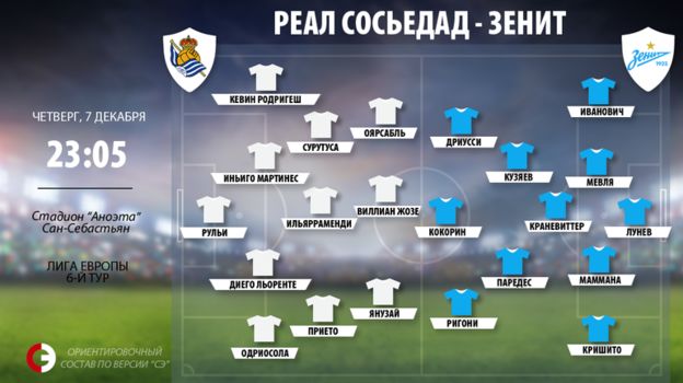 Матч "Реал Сосьедад" – "Зенит" состоится в четверг, 7 декабря, начало – в 23.05 по московскому времени. "СЭ" проведет текстовую трансляцию игры.