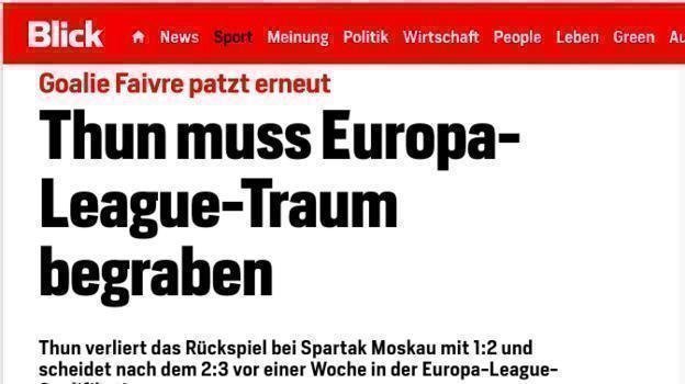 — После быстрого гола «Тун» мечтал о чуде в Москве на протяжении 50 минут. Поначалу все шло по плану Марка Шнайдера. Но затем вратарь отбил мяч прямо на ногу Понсе после безобидного удара Шюррле. И через шесть минут «Спартак» установил окончательный счет в матче. «Тун» покидает Лигу Европы, проиграв команде, стоимость которой в пять раз выше. Это не стыдно. По итогам этих двух игр можно сказать, что Лига Европы была вполне себе достижима.