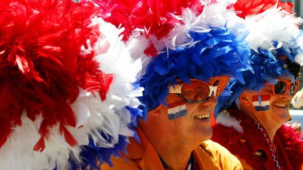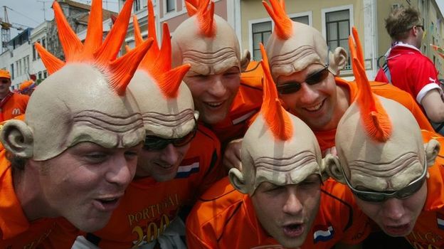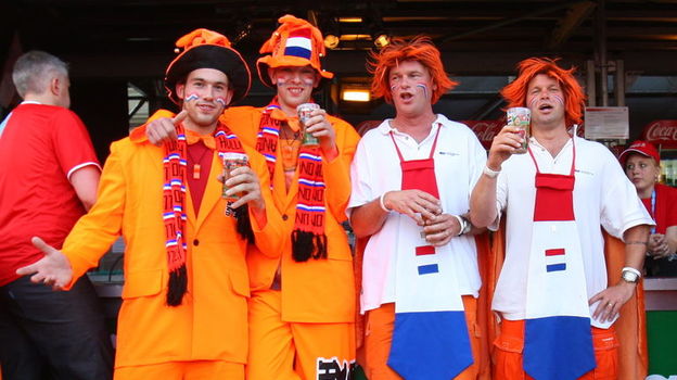 Голландцы выбираются на футбольные турниры не так массово, как мексиканцы, но зато по уровню яркости, которая выделяет их на фоне других, равных им практически не найти. Все из-за кричащего оранжевого цвета, по которому фанатов из Страны тюльпанов можно узнать в любом уголке Земли. Эта гамма лишь усиливается за счет рыжих париков, которые часто надевают и женщины, и мужчины. Последние и вовсе могут даже покрасить в национальный цвет усы и бороду!