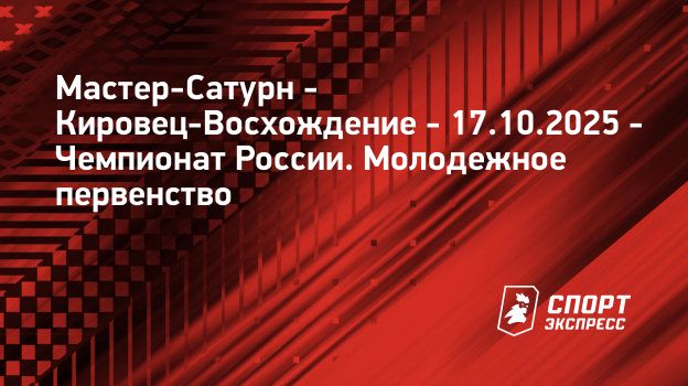 "СЭ" рад приветствовать всех любителей футбола! Здесь вас ждет онлайн-трансляция матча Мастер-Сатурн (Егорьевск) – Кировец-Восхождение (Санкт-Петербург). Чемпионат России. Молодежное первенство, Группа Б. 26-й тур Матч пройдет 17 октября 2025 года на стадионе Мастер-Сатурн (Егорьевск, Россия). Начало - в 15:00 по московскому времени.