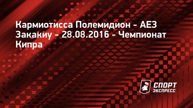 "СЭ" рад приветствовать всех любителей футбола! Здесь вас ждет онлайн-трансляция матча Кармиотисса Полемидион (Пано Полемидия) – АЕЗ Закакиу (Лимассол). Чемпионат Кипра, 2-й тур Матч пройдет 28 августа 2016 года на стадионе Pano Polemidia Community Stafium (Пано Полемидия, Кипр).