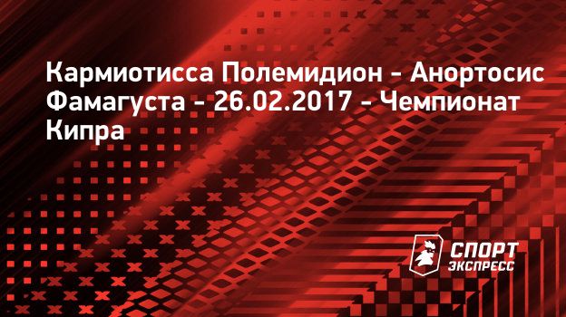 "СЭ" рад приветствовать всех любителей футбола! Здесь вас ждет онлайн-трансляция матча Кармиотисса Полемидион (Пано Полемидия) – Анортосис Фамагуста (Ларнака). Чемпионат Кипра, 25-й тур Матч пройдет 26 февраля 2017 года на стадионе Pano Polemidia Community Stafium (Пано Полемидия, Кипр).