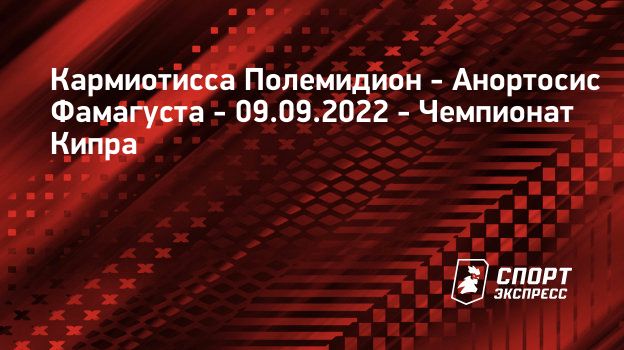 "СЭ" рад приветствовать всех любителей футбола! Здесь вас ждет онлайн-трансляция матча Кармиотисса Полемидион (Пано Полемидия) – Анортосис Фамагуста (Ларнака). Чемпионат Кипра, 3-й тур Матч пройдет 9 сентября 2022 года на стадионе Pano Polemidia Community Stafium (Пано Полемидия, Кипр).