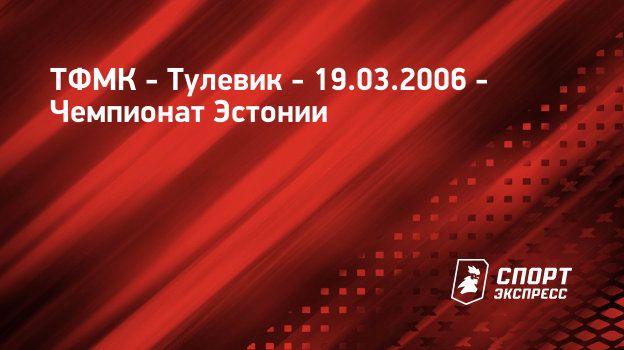 "СЭ" рад приветствовать всех любителей футбола! Здесь вас ждет онлайн-трансляция матча ТФМК (Таллин) – Тулевик (Вильянди). Чемпионат Эстонии, 2-й тур Матч пройдет 19 марта 2006 года на стадионе Кадриорг (Таллин, Эстония).