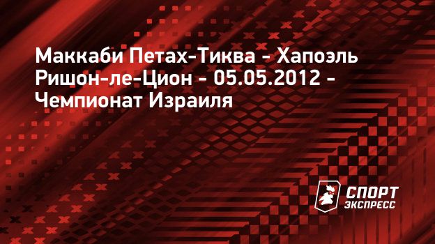 "СЭ" рад приветствовать всех любителей футбола! Здесь вас ждет онлайн-трансляция матча Маккаби Петах-Тиква (Петах-Тиква) – Хапоэль Ришон-ле-Цион (Ришон-ле-Цион). Чемпионат Израиля, Квалификационный раунд. 5-й тур Матч пройдет 5 мая 2012 года на стадионе Ramat Gan Stadium (Рамат-Ган, Израиль).